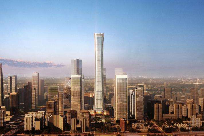 北京中信大廈又稱“中國尊”位于北京CBD,建筑層數(shù)地上108層,建成后是北京第一高樓,集辦公、觀光多種配套設(shè)施為一體,成為北京新的打卡地標(biāo)。